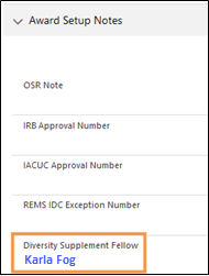 OSR indicates the Diversity Supplement Fellow recipient in the Award Set-up Notes which is passed along to CGA via CACTAS when processing the funding under the parent award.