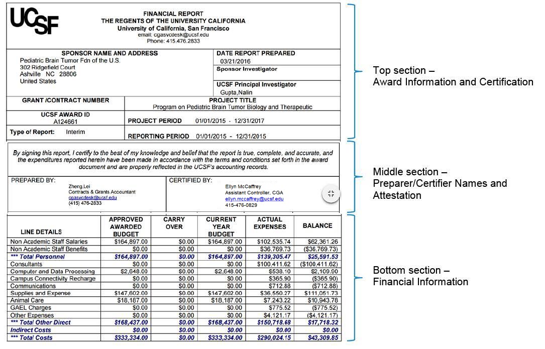 - Private Contract or Grant Financial Report Template – Current Period if the sponsor requires reporting for the current budget period only