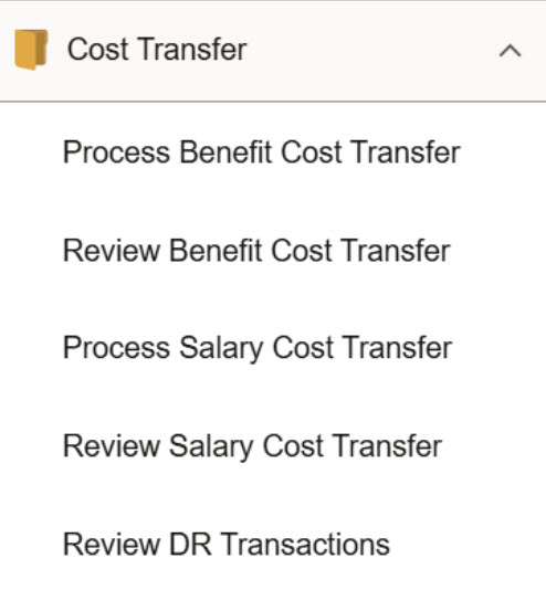 In addition, the navigation menu to access salary cost transfers, benefit cost transfers, and historical direct retro transactions is changing. A new navigation collection titled Cost Transfer will be available beginning July 1 from the General Ledger Tasks tile on the General Ledger Administration homepage. It replaces the previous Direct Retro navigation collection.