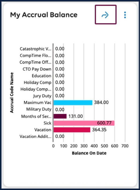 Click the arrow on the tile to view accrual balance details in the Employee Accruals dataview.